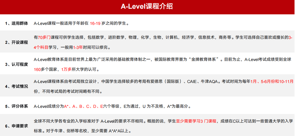 A-Level(General Certificate of Education Advanced Level,简称GCE A-Level或A-Level);英国普通中等教育证书考试高级水平课程,是英国全民课程体系,也被称为“英国高考”是英国的大学入学考试课程;