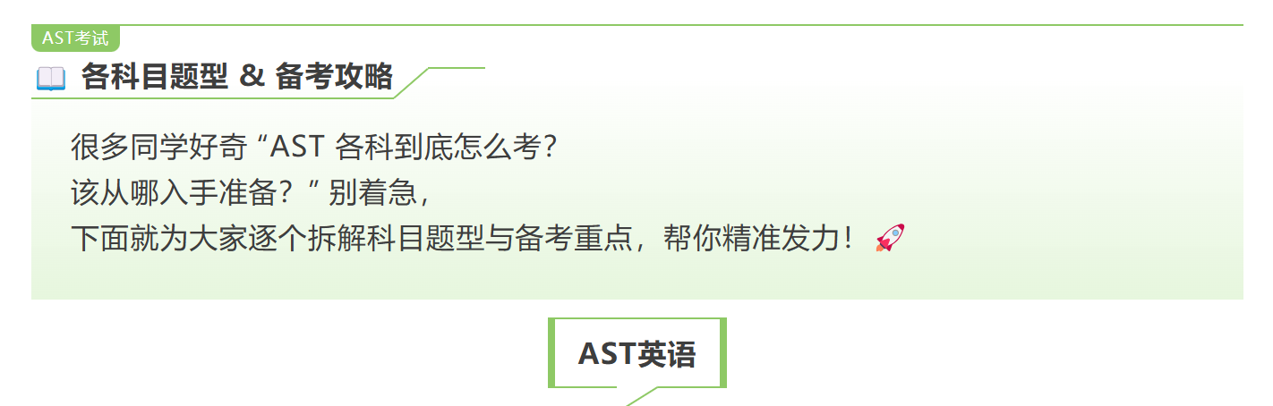 今天为大家带来 AST 考试 12 月批次的关键信息、科目题型解析和备考注意事项,快往下看!