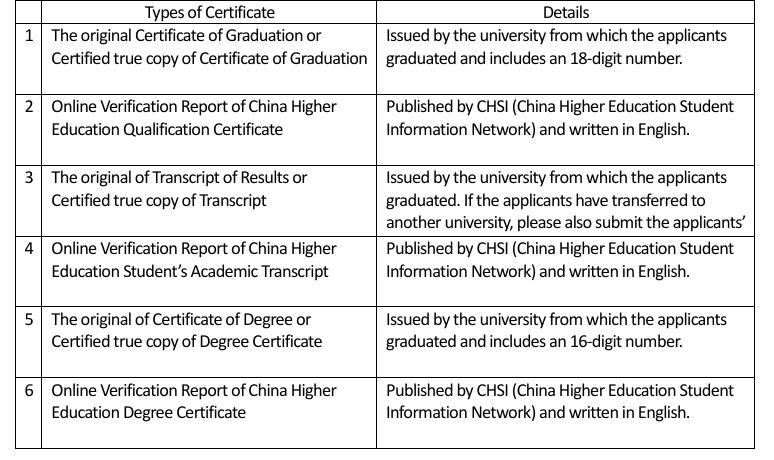 · 大学毕业(或预毕业)证明+学位证明(认证报告需平台直接发送)