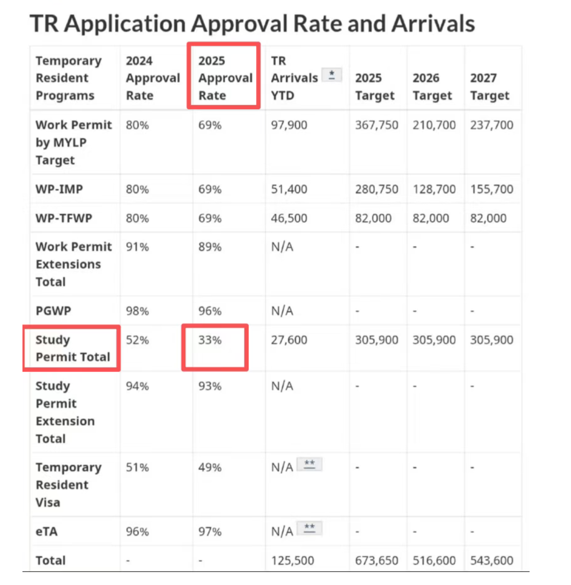 2025 年加拿大学签(Study Permit)的整体批准率,居然只有——33%!
