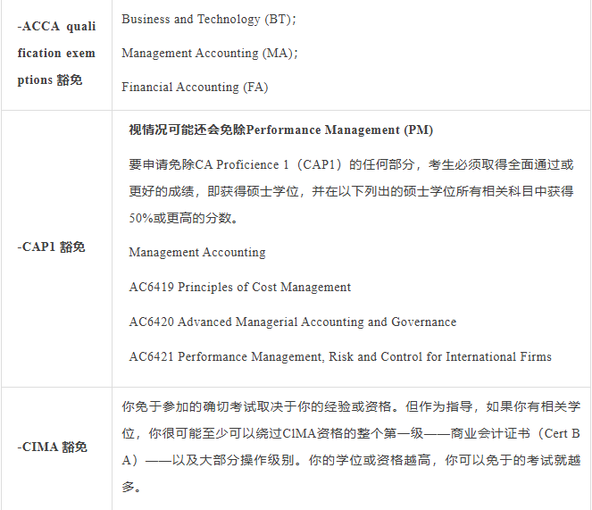 •该专业毕业生可获得三大会计机构的豁免:CIMA、ACCA 和 CAI。