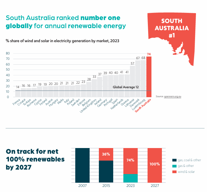 南澳州一直是全球清洁能源转型的领军者,拥有风能、太阳能、海洋能、地热能等多种可再生能源资源,同时还部署了各大规模的电池储能系统,以增强能源稳定性。目前,南澳州74%的电力都来自于可再生能源,位列世界之首,并计划在2027年实现100%可再生能源发电。