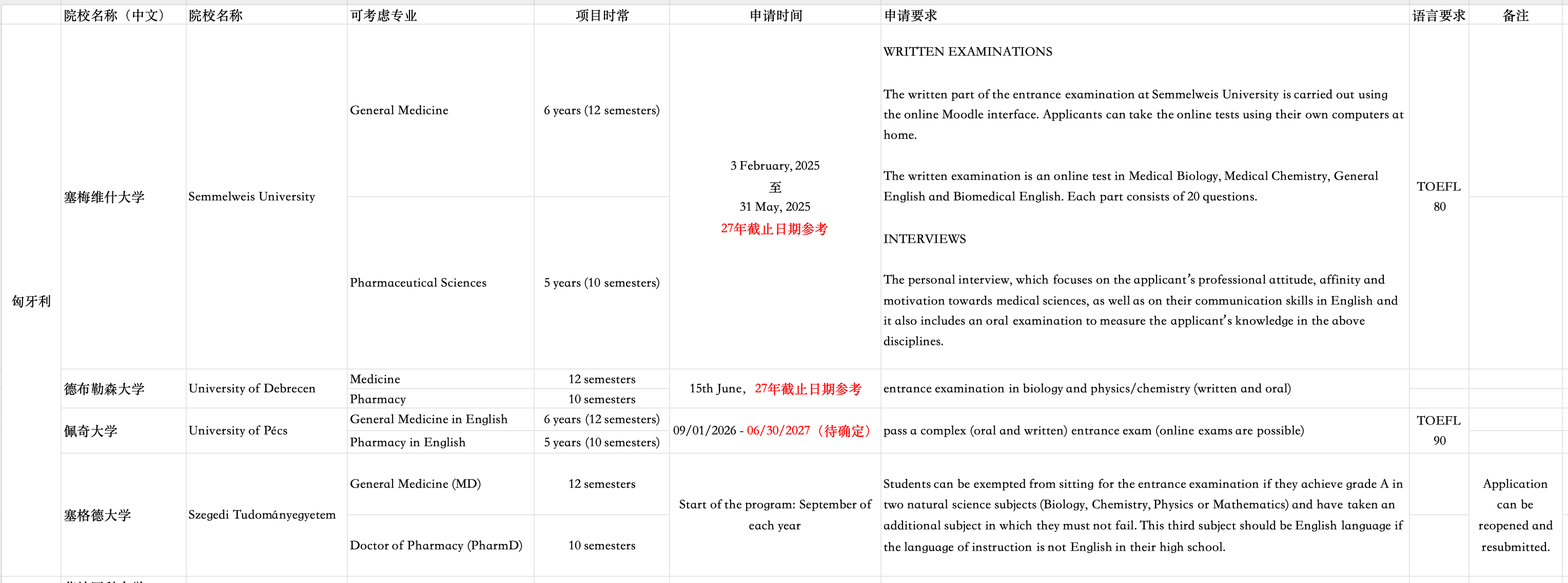 以匈牙利的四所本科直申医学院的学校为例,医学院同时提供医学和药学两个学位。