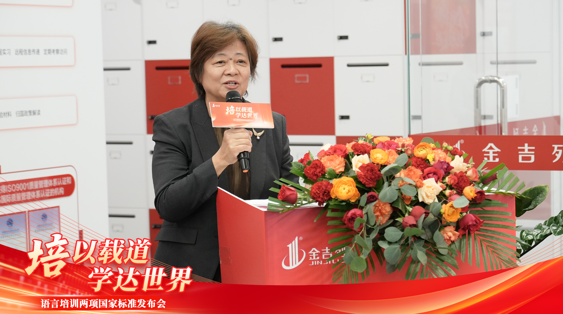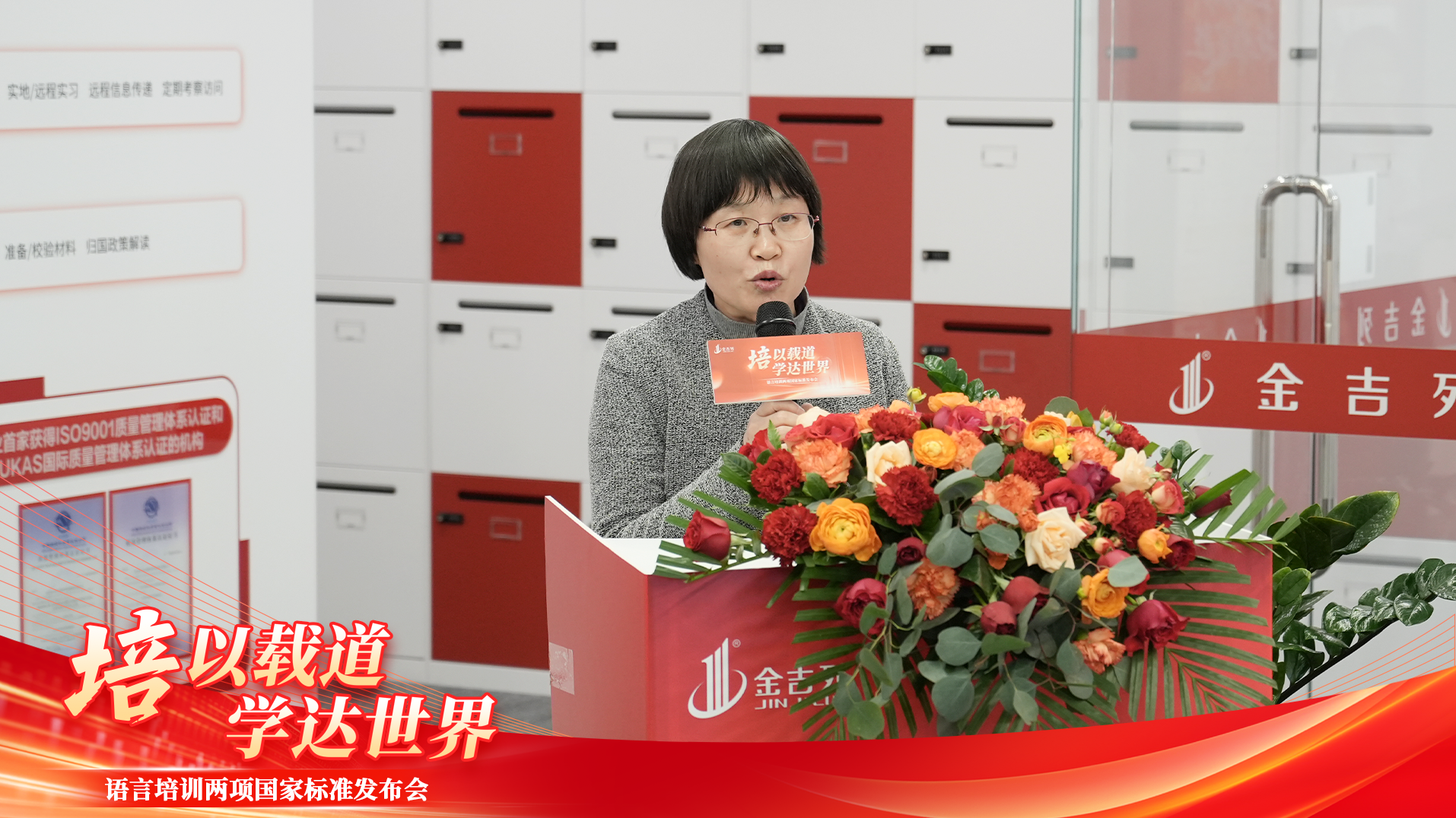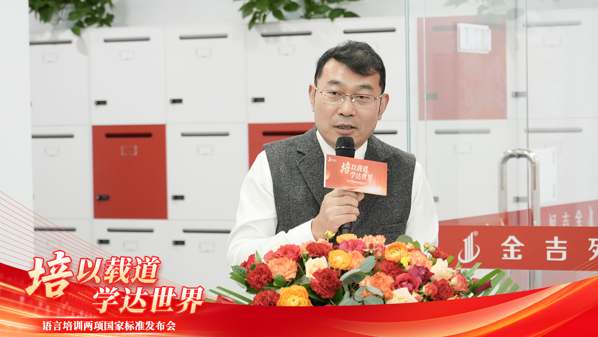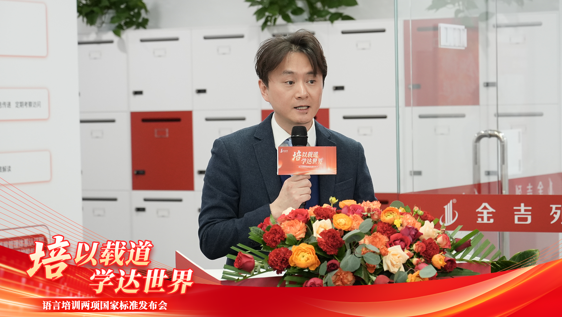 随后,金吉列留学副总裁、语培事业部负责人李文达先生作为承办方代表致辞。李总表示,作为行业标准化建设的积极参与者,金吉列在标准化服务方面始终积极践行国家标准,未来,金吉列也将继续率领优秀语培教师队伍,全力支持国家标准的宣贯实施工作,推动行业服务质量提升。