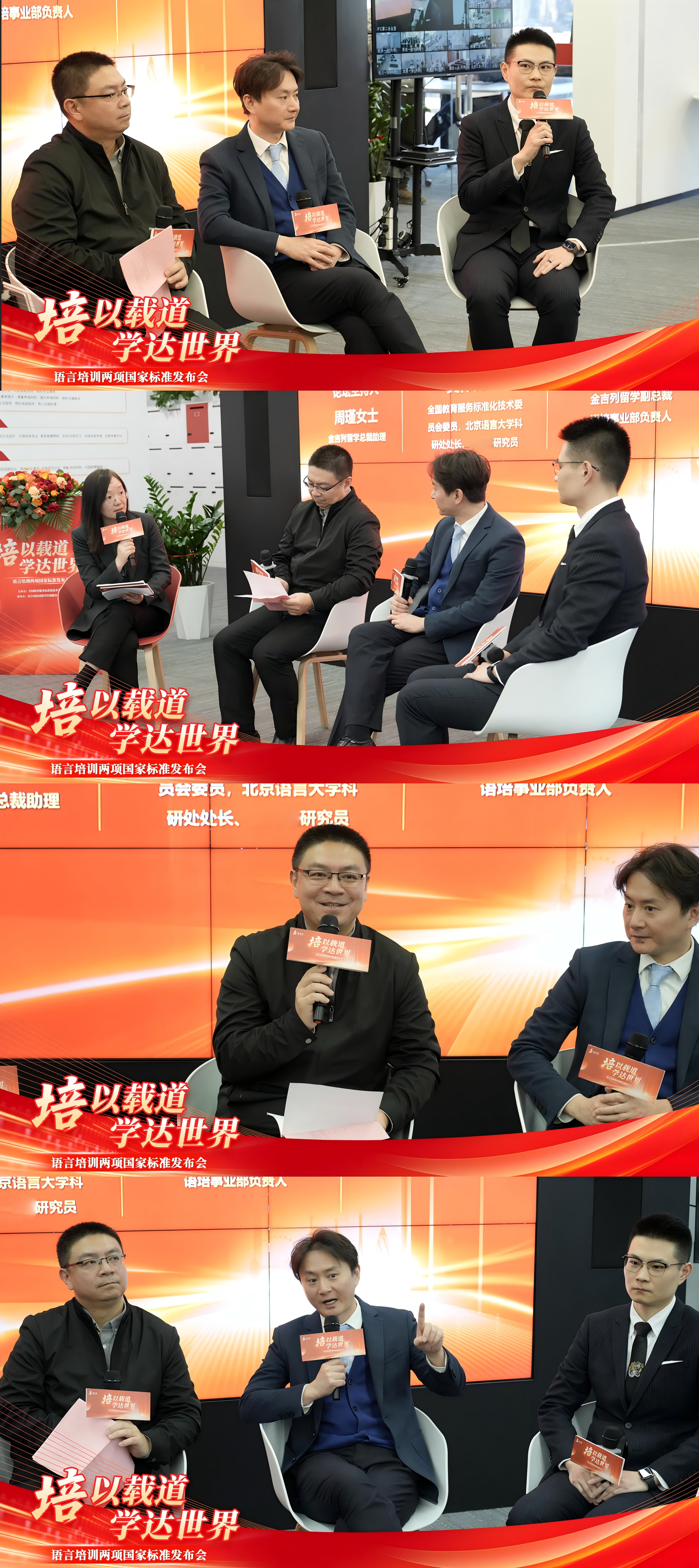 圆桌论坛上,嘉宾就国家标准如何重塑语培的价值内核、全球胜任力培养等核心议题展开讨论,并一致认为,两项国家标准的发布实施将推动语言培训行业从规模扩张向质量提升转型,为培养具有国际视野的高素质人才提供有力支撑。
