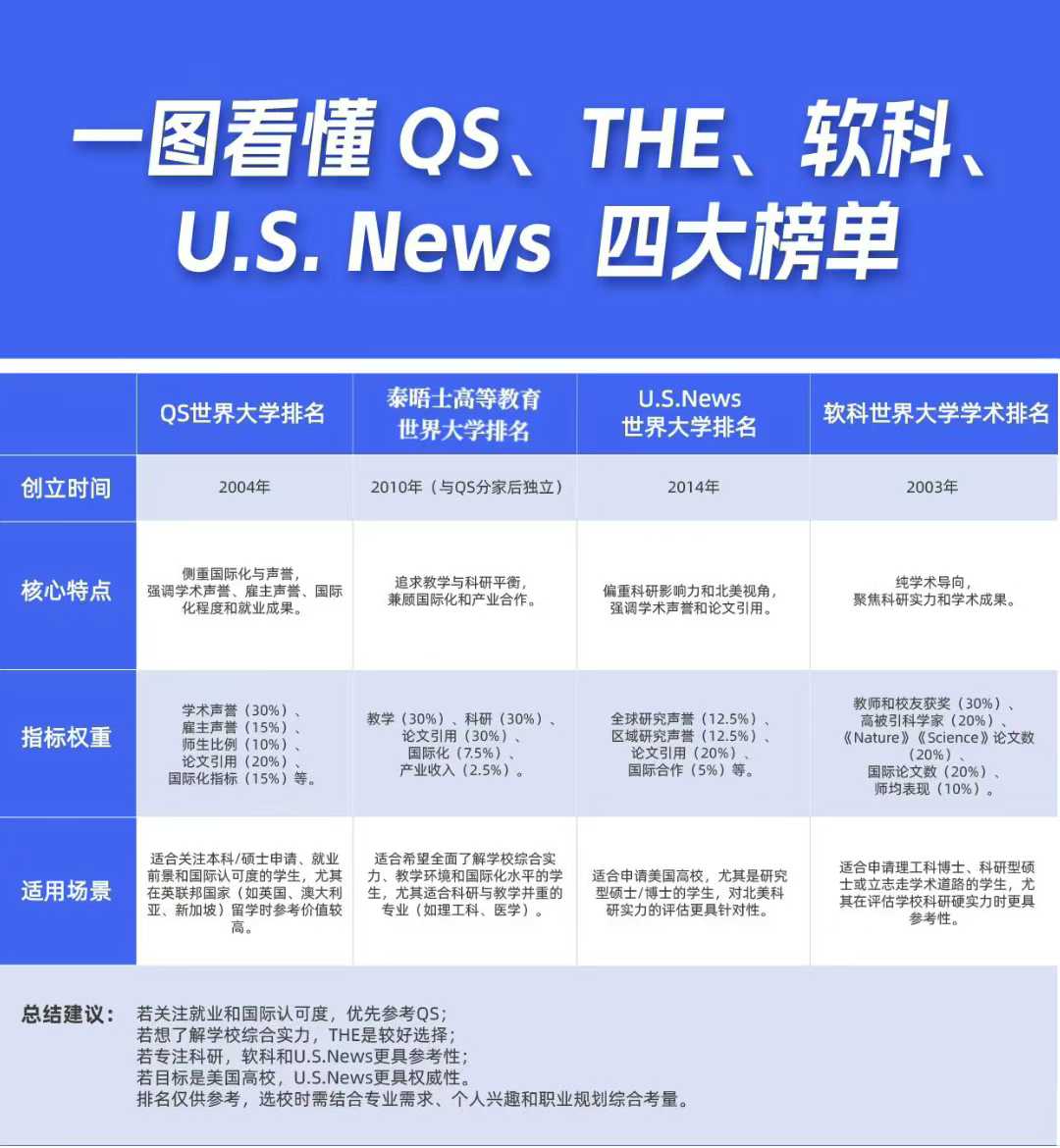 全球四大院校排名(QS、USNEWS、THE、软科)的权威不言而喻!