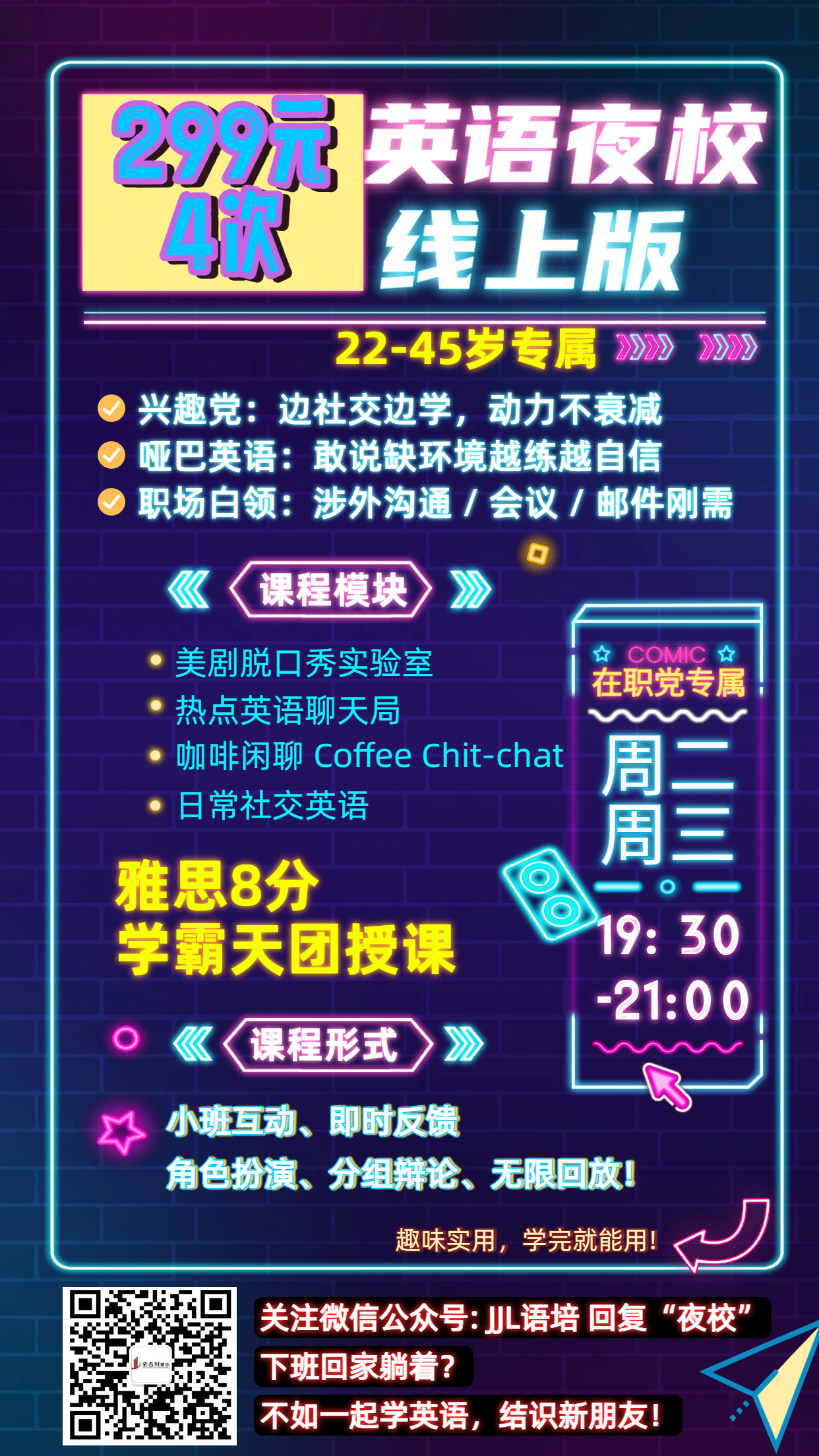 关注公众号“JJL语培”,回复“夜校”抢占名额!