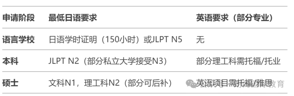 注:日语零基础者可申请部分语言学校的“低门槛班”,但需承诺入学后强化学习。