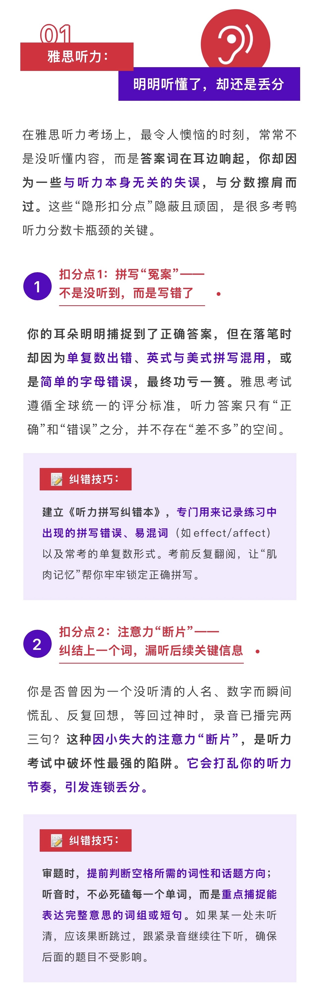 一、听力常见扣分点