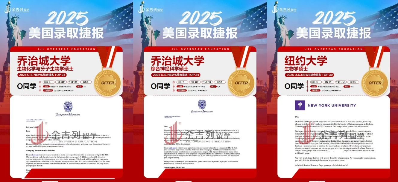 今天要分享的案例主角O同学,以GPA 3.2+、GRE 320+的成绩,一举斩获哥伦比亚大学、芝加哥大学、纽约大学、乔治城大学等多所名校的神经科学/生物医学硕士录取。O同学的故事,或许能给你不一样的启发。