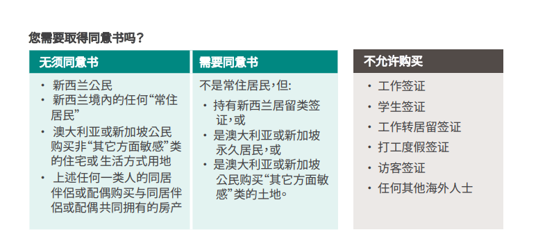土地限制 禁止购买敏感土地 (如超5公顷土地、海岸线周边物业)上的房产,需符合新西兰国家利益;