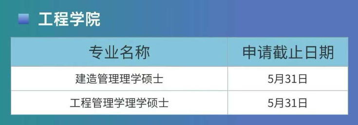 工程学院涵盖建造管理、工程管理等领域,为工科背景学子提供优质深造平台,相关专业截止日期: