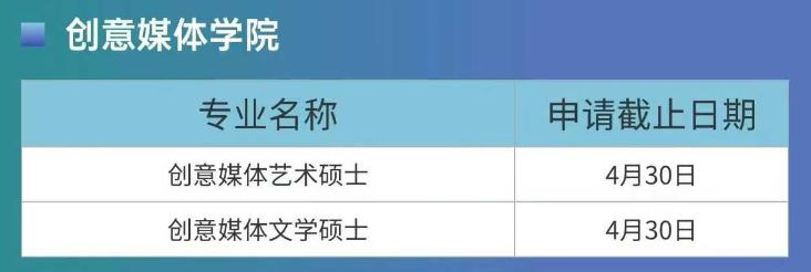 创意媒体学院是城大特色学院,在创意艺术、新媒体领域独具优势,相关专业截止日期: