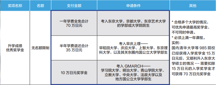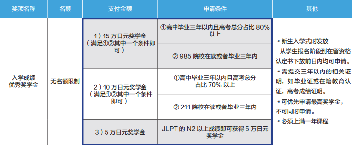 注*入学成绩优秀奖学金,任意一项,不可兼得,且与升学成绩优秀奖学金也不可兼得