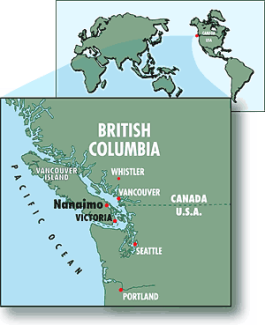 纳奈莫是一座沿海城市,气候温和,冬暖夏凉(冬季平均气温 6摄氏度,夏季平均气温24摄氏度),风景优美,交通便捷。距离BC省省会-维多利亚市仅90分钟车程,与温哥华市隔水相望,乘机仅15分钟,乘船仅90分钟。温哥华岛面积略小于中国的台湾岛,总人口约为75万人,其中华人比例仅为1.5%,给世界各地的留学生提供了良好的英文学习环境,和优越的本土人文生活环境。