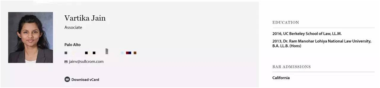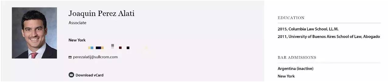 以上截图来自于美国排名第四的顶级律所 Sullivan Cromwell 的官方网页。在 Sullivan 的美国办公室,就至少有两位 LLM 毕业生直接进入该所成为 associate ,背景分别为:来自阿根廷,毕业于哥大法学院;来自印度,毕业于伯克利法学院。之前 Sullivan 还有一位来自于委内瑞拉的女生, 2014 年毕业于伯克利法学院 LLM 项目,随后进入 Sullivan 纽约办公室成为 associate 。 毕业就进入美国 Top 律所的美国办公室拿 18 万美元的起薪,厉害了我的 LLM !