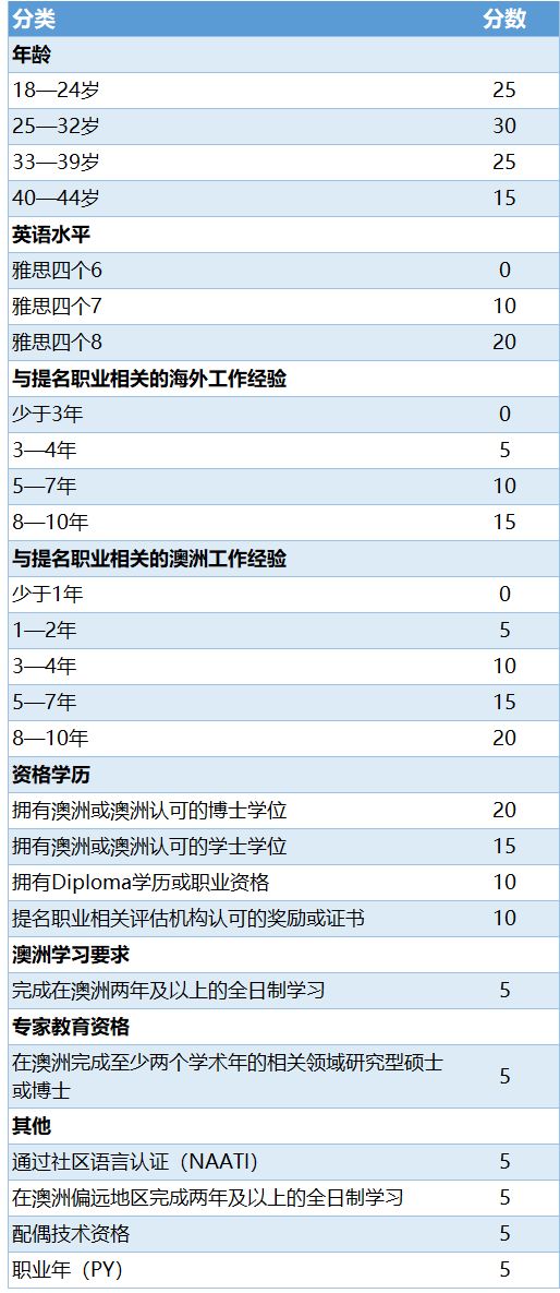 澳洲移民和国内一些大城市采用积分落户一样,是采取打分制,被称为EOI制度。