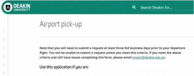 需要满足是迪肯大学学位生,交换生或是语言学生,而且必须是第一次到达澳大利亚才能享受学校免费接机服务。