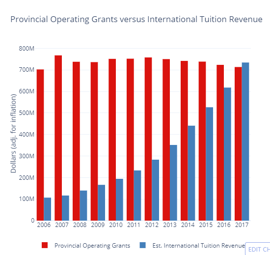 远超省政府拨款和本地学生,成为学校运营维持的主要经济来源 。