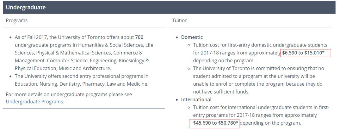 那么除了多大以外,加拿大其他大学目前的学费情况又是怎样的呢?
