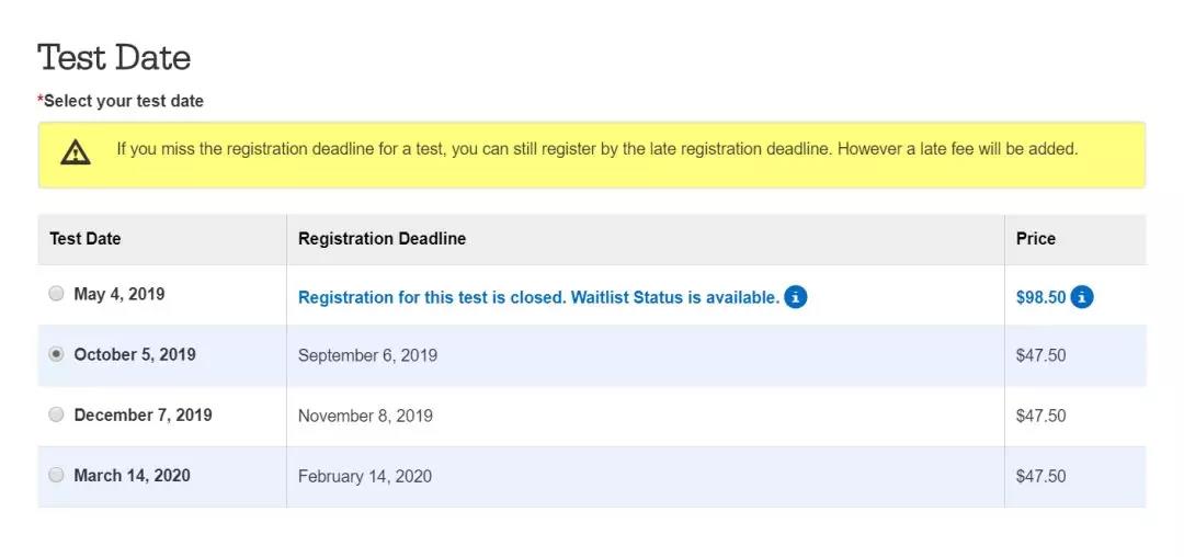 大概是“近水楼台先得月”的原因,北美考区的考生们有更多的考试机会。这次公布的考试时间分别为:2019年8月24日,2019年10月5日,2019年11月2日,2019年12月7日和2020年3月14日。