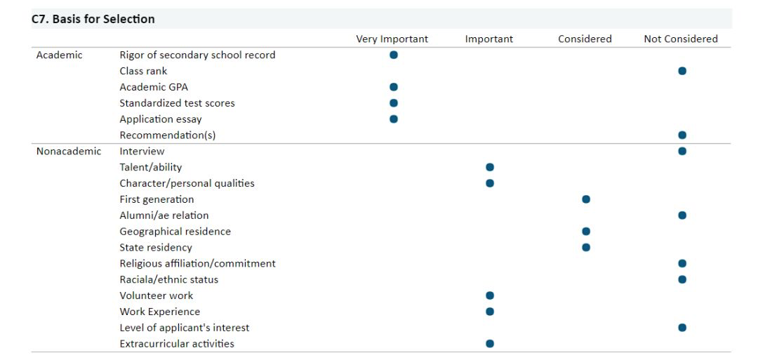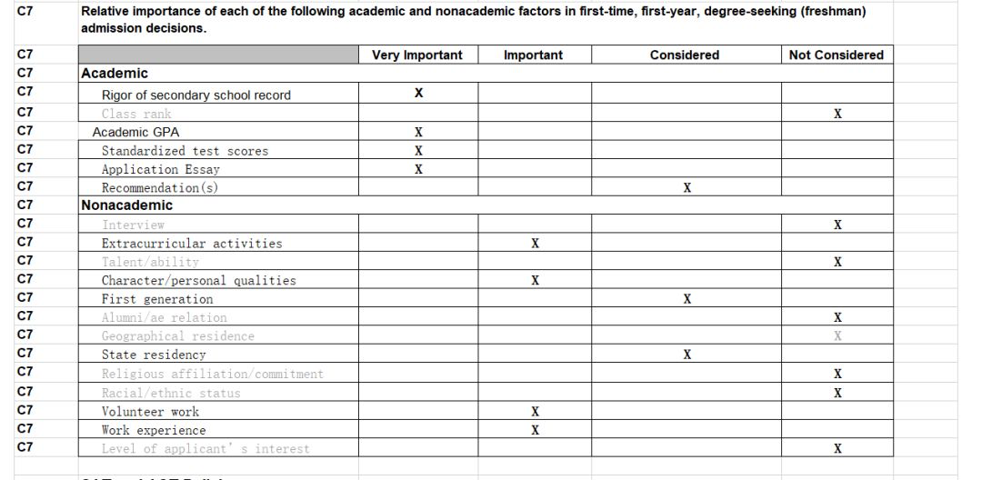 我们再看看在CDS数据公布两个大学录取考虑的要素汇总,是否可以发现一些端倪: