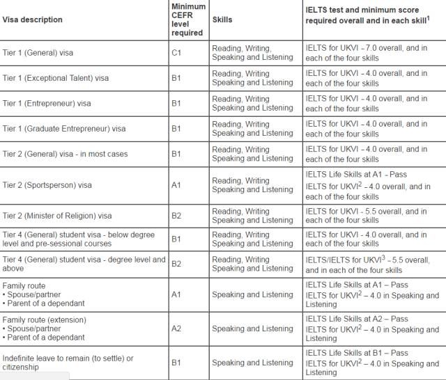 其中,T1企业家签证、T2类签证、家庭配偶签或陪伴类签证,多要求雅思总分达4分即可;