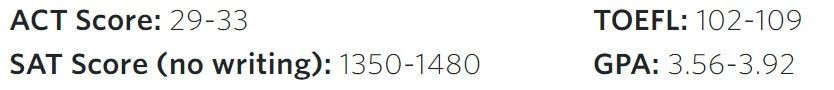 从UIUC给出的数据来看,对于申请工程学院的学生来说,UIUC可绝对不是万能保底校哦,录取学生的高分还是相当可观的! 以下是参与投保的工程学院和商学院本科录取学生标化数据: