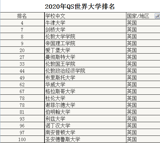 英国最新QS世界排名中进入世界前百强的英国大学有哪些 : 学校名称