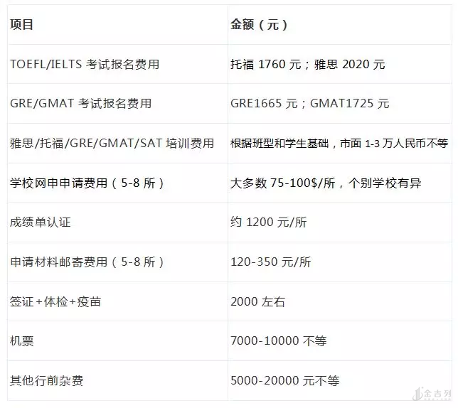 美国留学前期费用清单