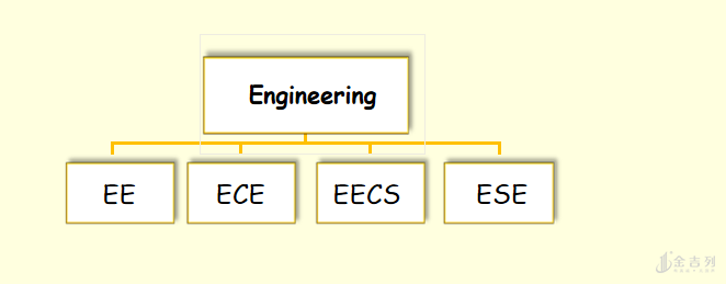 Electrical an Electronic Engineering或Engineering Electronics,简称EE,有些学校也会称为ECE(Electrical an Computer Engineering), 个别学校 也会将EE 和 CS 放在一起,称为EECS. 国内对应的本科 专业包括:电子工程,通信工程,电信工程,信息工程, 电气工程自动化,微电,光电信息,精密仪器,测控技术 和仪器等。物理,材料科学与工程等专业也可以转申 EE.