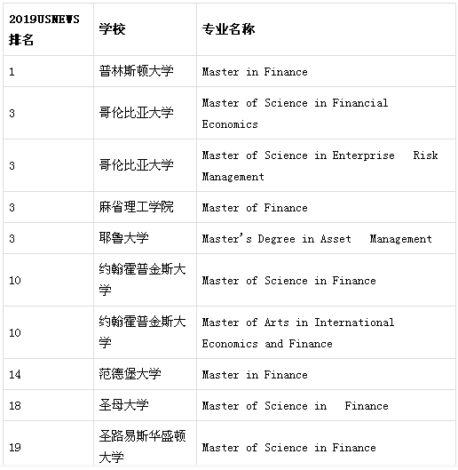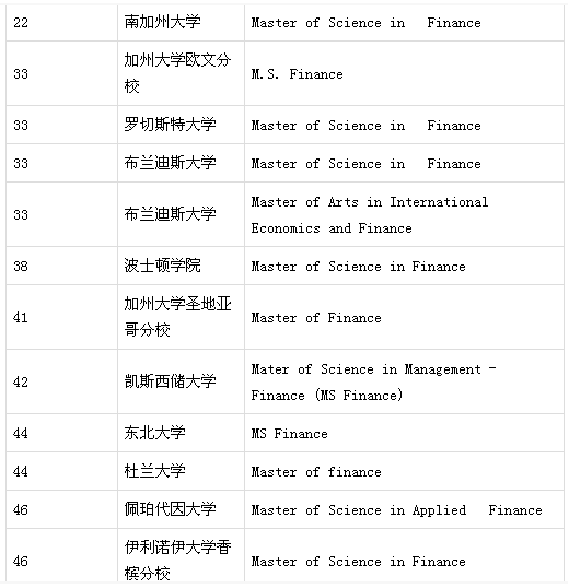 美国TOP50大学金融硕士开设情况: