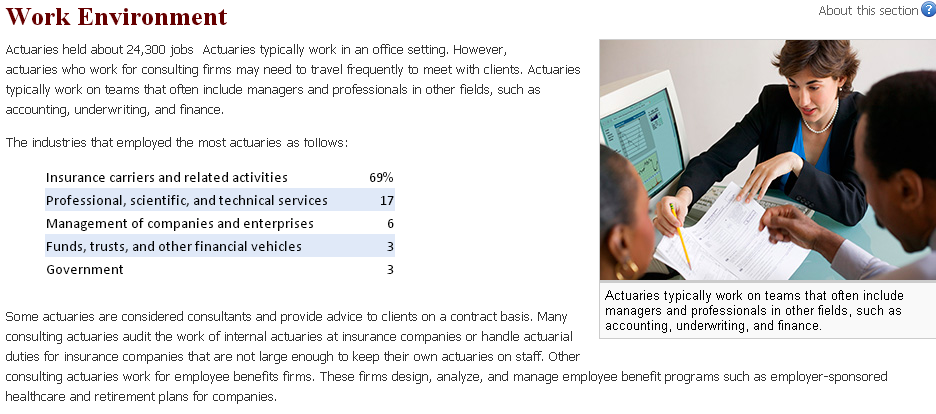 关于精算专业的就业情况,以下是美国劳工部对精算师的介绍: