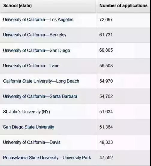 根据US News的数据,申请人数最多的10所大学中,加州分校占据5席: