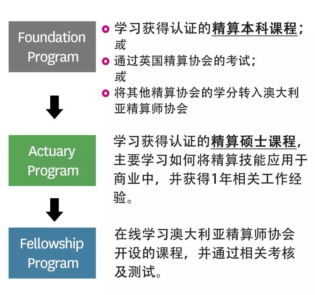 从认证流程上看,成为一名澳大利亚认证精算师,最快速的方式就是 学习获得澳大利亚精算师协会认证的课程 。