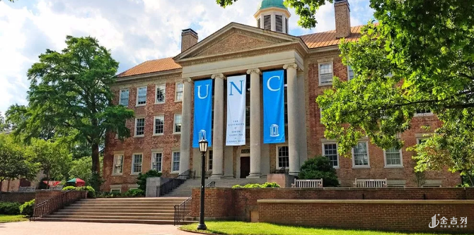 UNC——北卡教堂山分校,公立常春藤初始成员,我们已经介绍过,在 Top 30 里面,UNC属于比较便宜的,国际生比例相较加州大学伯克利、密歇根大学低,申请难度虽然比不上人满为患的加州大学,但也能配得上她的排名。