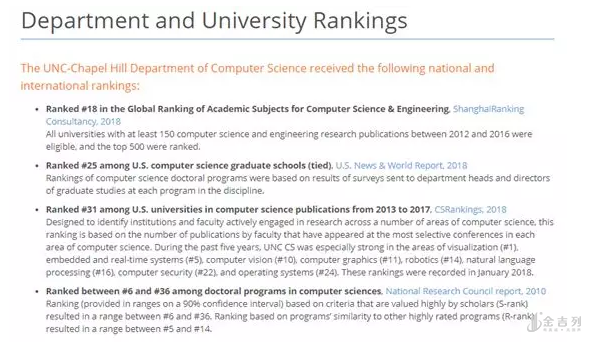 UNC计算机专业排名第25