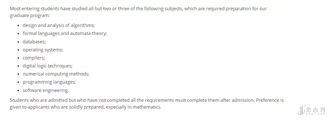 我当时自己也搜了几所大学,发现美国大学都很喜欢说什么“欢迎所有背景的学生”,太“虚伪”,后面一定会跟上一大段“最好**背景”,或者一大堆先修课要求,所以一定要关注一下,这样你大三或者大二找机会弥补一下,这是 UNC 要求读过以下列表中至少两门课程。