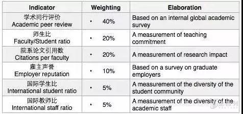 所以衡量的更多的是学校的学术水平(比如发表的文章的数量)和国际学术声誉。