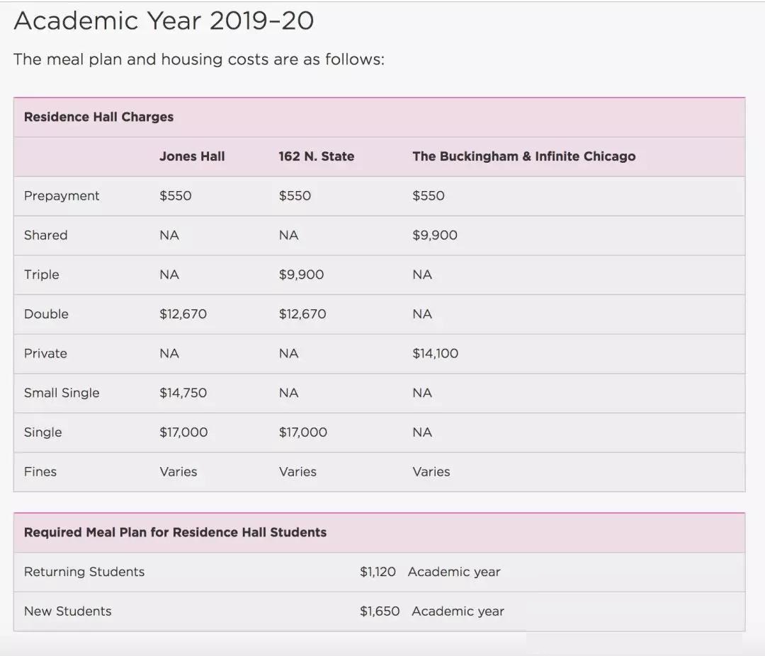 芝加哥艺术学院的宿舍分为几个不同的宿舍楼,里面包含的房型也不一样,有三人间(triple),双人间(ouble),和单人间(single)。一个学年(不包括暑假)的费用大概1万到1.7万不等,大概一个月1200-1800刀不等。在学校住的好处是离学校非常近,而且宿舍自带家具,也包水电网费,学生可以拎包入住。出去租房可能可以找到性价比更合适的房子,和室友分摊房租,最低大概800刀左右也是有一些租房选择的,同时要和室友分摊水电网费。房子一般一年起签,所以暑假如果不在美国涉及到房子会有空置期的问题。美国的房子大多不带家具,所以需要自己想办法置办,也有人会直接续租,上一户遗留下来的家具。