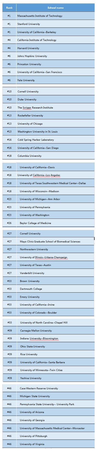 1、生物化学/生物物理学/结构生物学(哈佛大学、斯坦福大学、麻省理工学院)