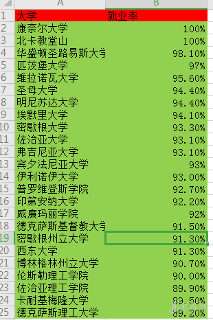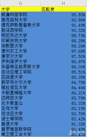 通过排名看到,其实商科项目就业前景比我们想象的好一点,有21所学校就业率超过90%,32所超过85%(去年超过90%的有27所,超过85%的有29所),其中康奈尔和北卡教堂山就业率达到100%。另外,威廉&玛丽学院、维克森林大学、德克萨斯基督教大学、新泽西学院的毕业生职业匹配度都超过90%。