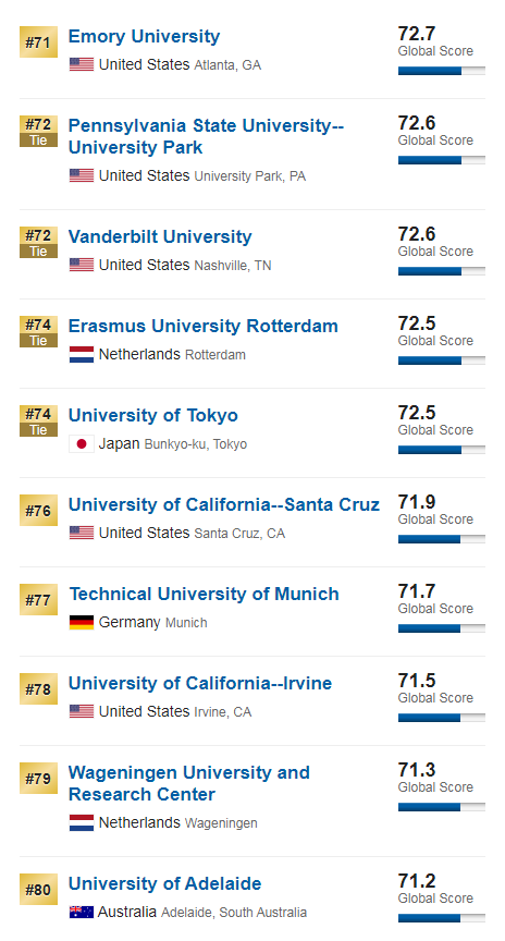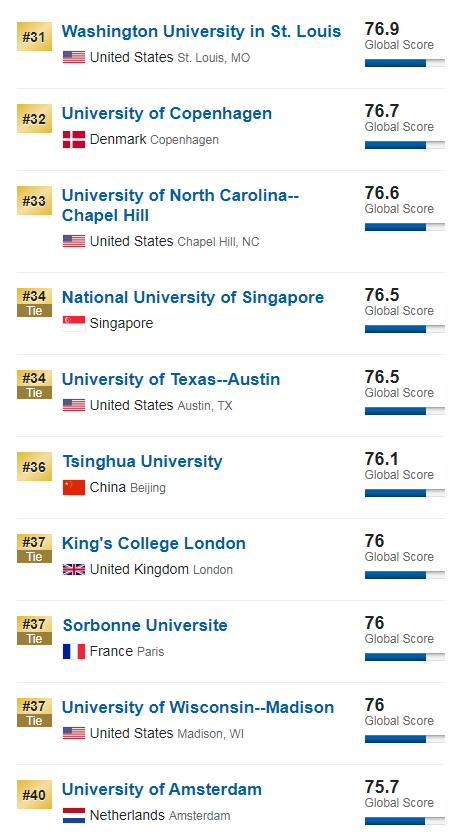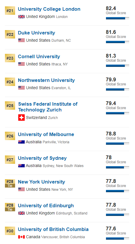 US News世界大学排名是继US News本科排名、US News研究生院排名之后,于2014年推出的具有强大影响力的全球性大学排名。 US News世界大学排名、上海软科ARWU世界大学学术排名、泰晤士高等教育世界大学排名、QS世界大学排名为公认的四大较为权威的世界大学排名。