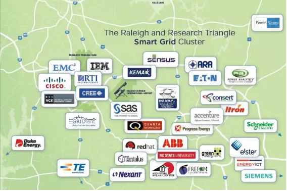 这三个区域都有特别好的学校,罗利有北卡罗来纳州立大学,达勒姆有杜克大学,教堂山有北卡罗来纳大学教堂山分校。所以在三角园区内有超过130家研发设施,150多家的组织和超过39000名的雇员。
