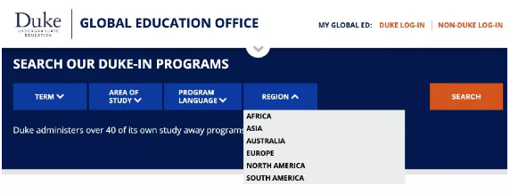 杜克的Stuy Away项目遍布全球六大洲,并且很多专业都有这个项目。然后你可以在很多个学期来选它,同时它其实是算学分的。