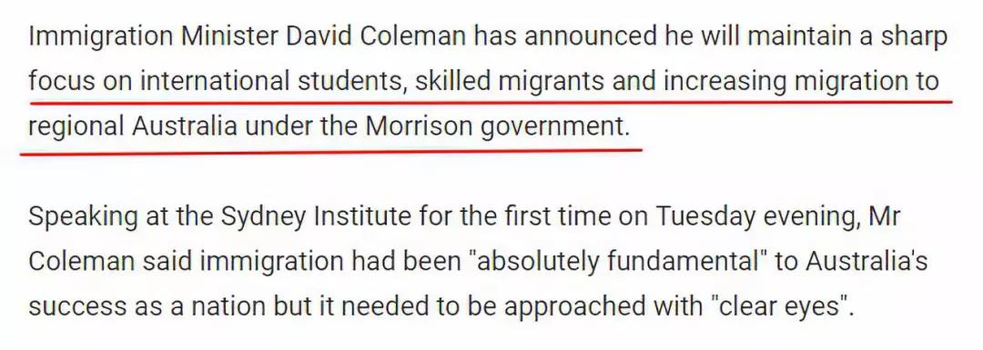 为了最大限度地提高来澳移民给澳大利亚带来的回报,科尔曼将把重点放在国际学生和技术移民身上,同时鼓励海外民众搬到澳大利亚边远地区生活工作。