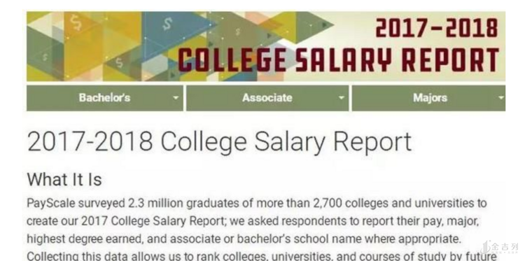 Payscale 调查了来自超过 2,700 所大学的 230 万毕业生,收集了工资、专业、最高学位、学校等信息,形成了一份“钱途”排行榜,如果你留学的目的是称为高富帅白富美走上人生巅峰,想要知道进什么大学,什么专业最有钱途,这份榜单就是你的答案。