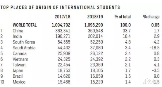 根据2019年《美国开放门户报告》,在2018到2019学年中,在美国学习的国际学生人数达到有史以来的最高109余万人,其中中国学生数量达到了约37万人。