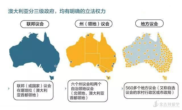 澳州联邦分为六个州及两个领地,国家分联邦、州(领地)、地方政府三级管理。
