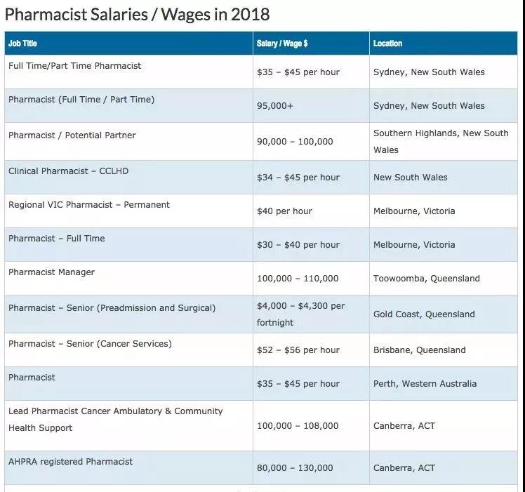 而澳洲各地的药剂师工资,也真是让人实名羡慕了。